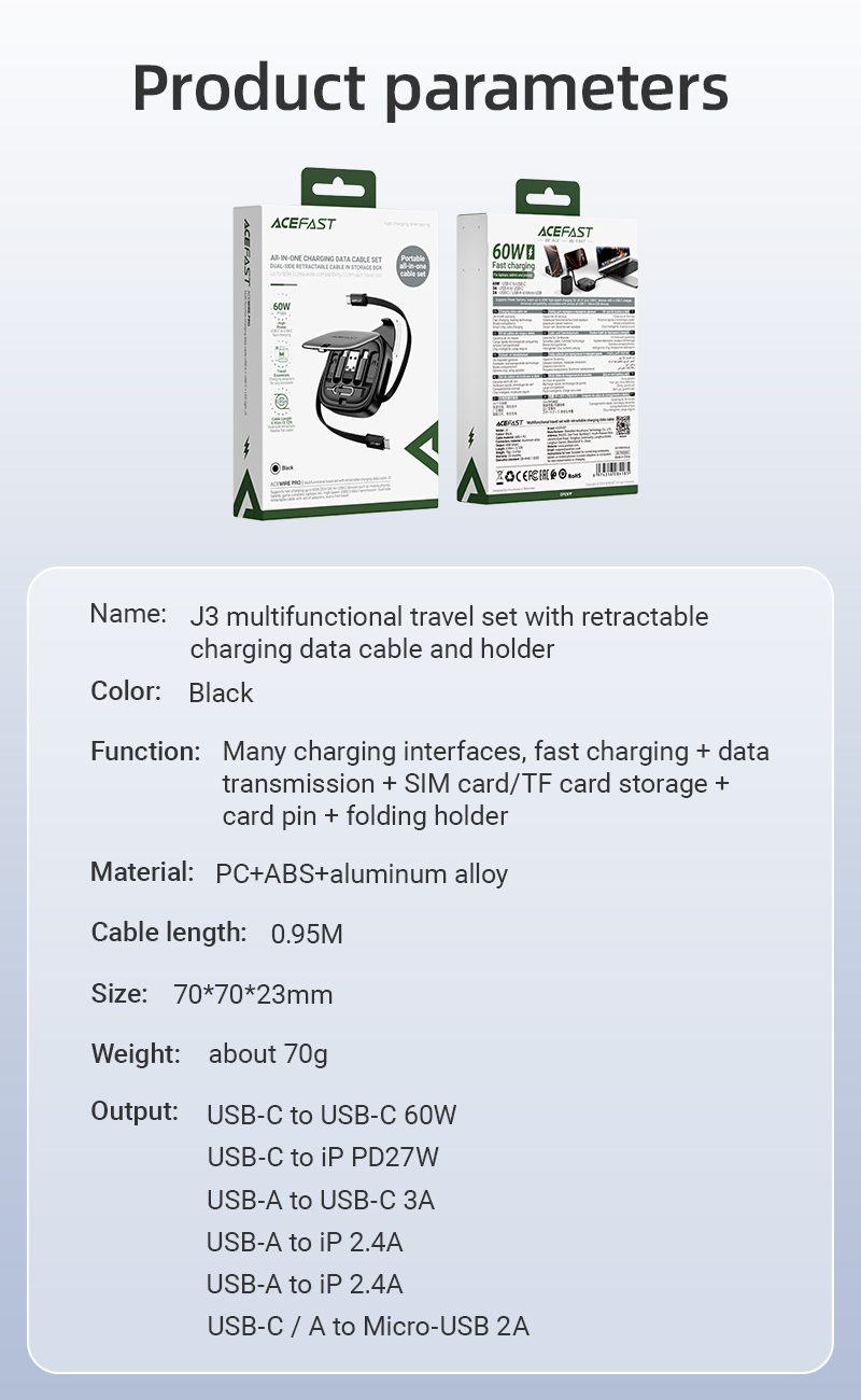 Giới thiệu sản phẩm Bộ du lịch đa năng ACEFAST J3 kèm cáp sạc dữ liệu rút gọn
