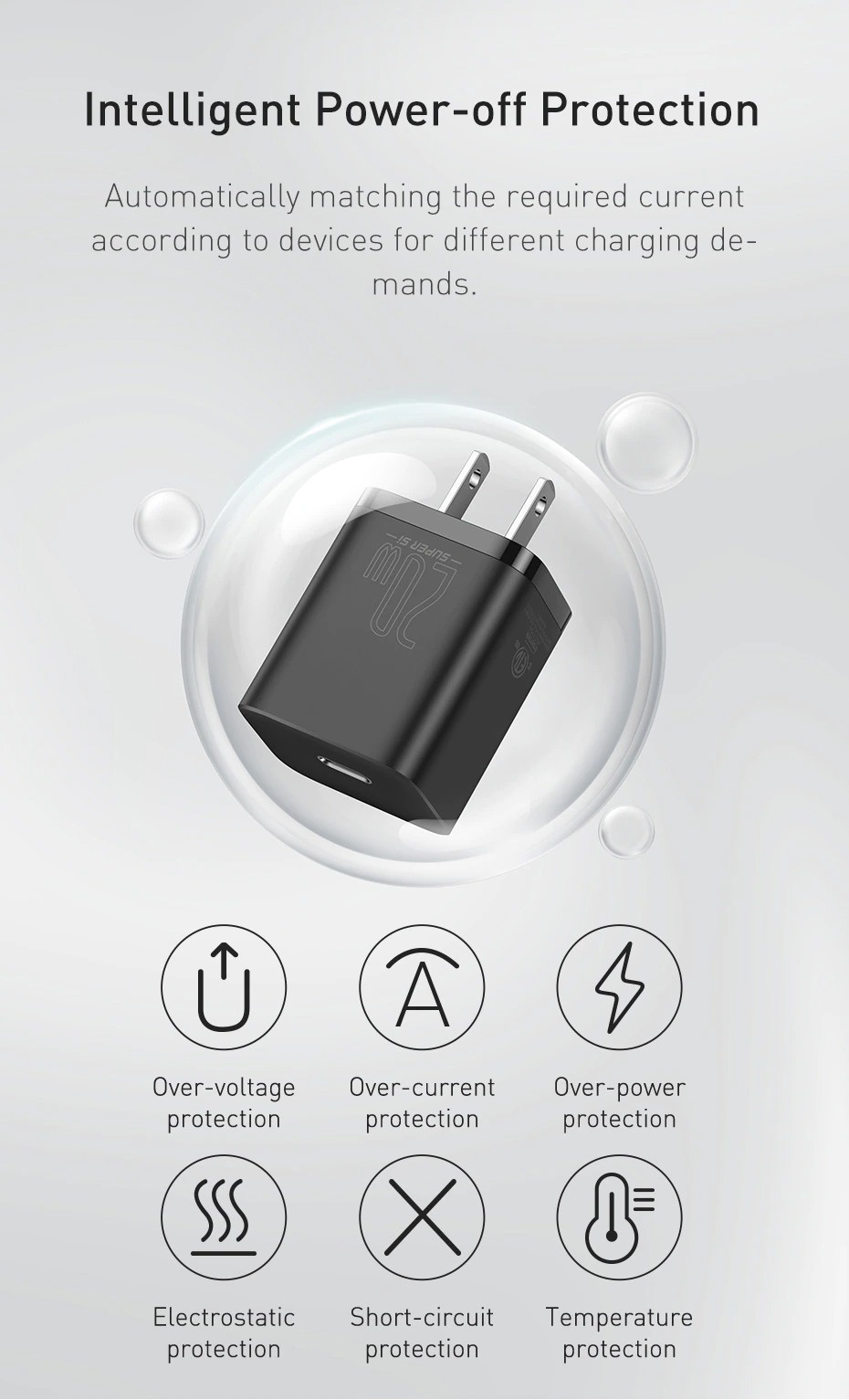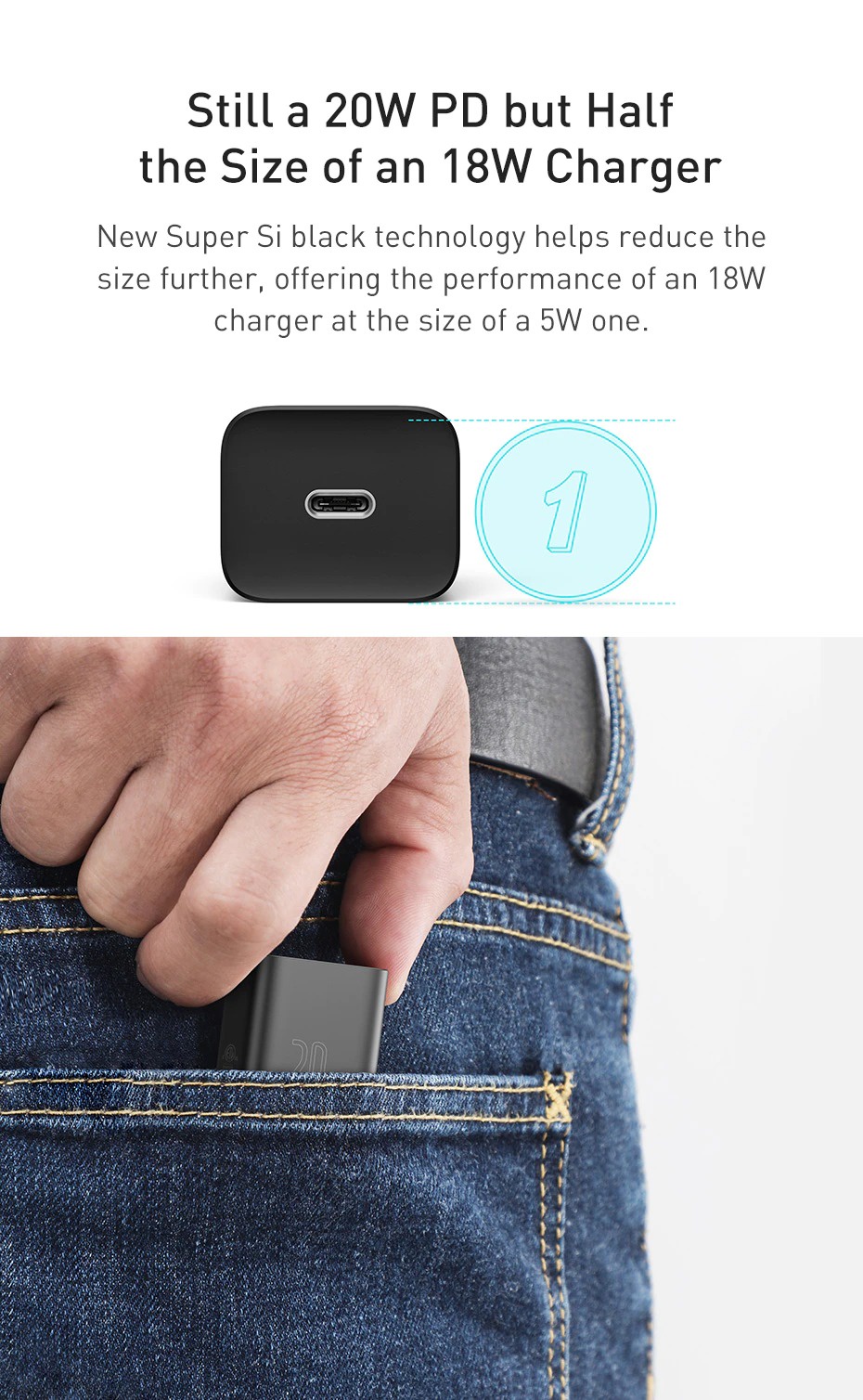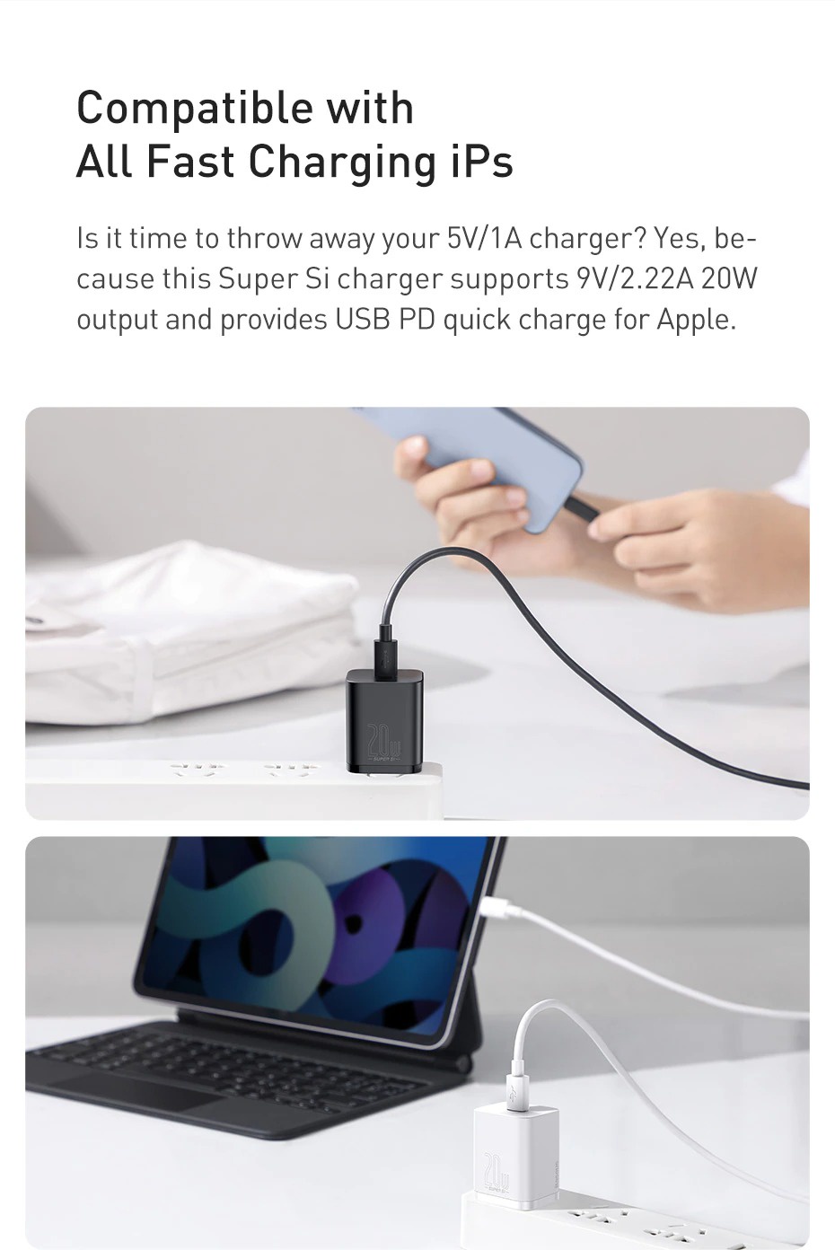 Hình ảnh chi tiết Bộ sạc nhanh, nhỏ gọn Baseus Super Si Quick Charger 20W dùng cho IP 12/iP11/XS Max (Type C, 20W/18W, PD/ QC3.0 Quick charger)