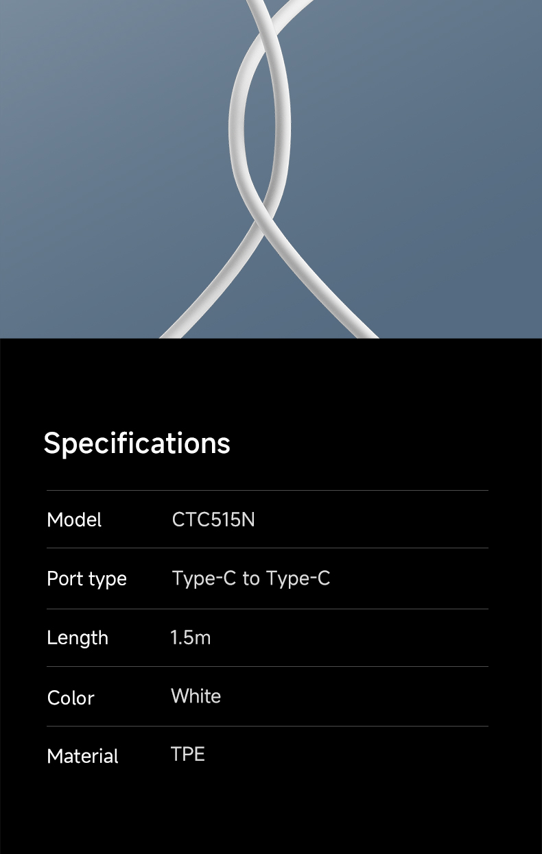 Cáp được chế tạo từ vật liệu TPE (Thermoplastic Elastomer) cao cấp, mang lại độ đàn hồi và bền bỉ ưu việt, chống lại các tác động vật lý như xoắn, gập hay đứt gãy trong quá trình sử dụng hàng ngày.