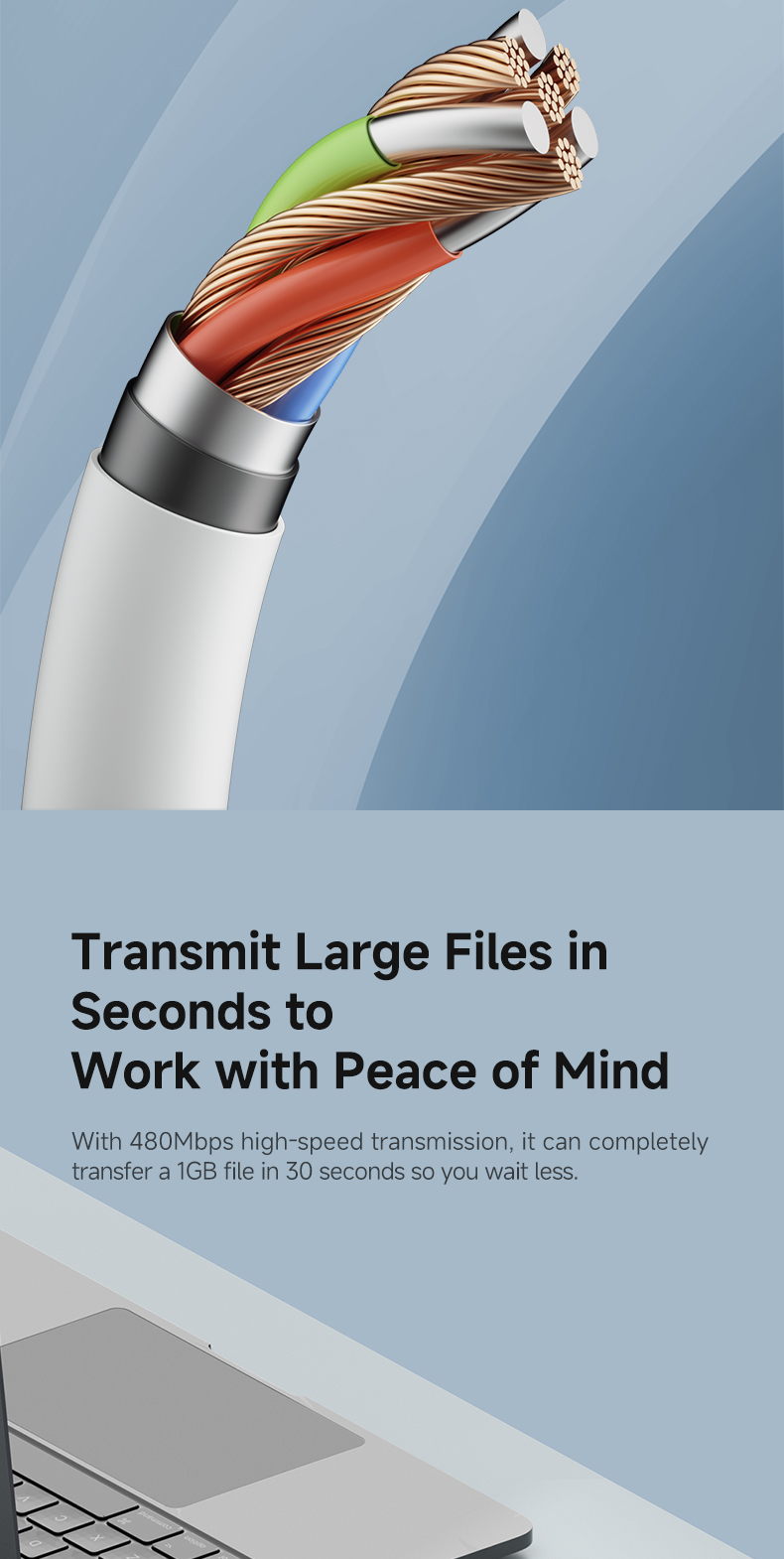 Tốc độ truyền tải 480Mbps đảm bảo việc chuyển giao các file ảnh, video, tài liệu dung lượng lớn diễn ra nhanh chóng, giúp tối ưu hóa thời gian và nâng cao năng suất làm việc hàng ngày của bạn.