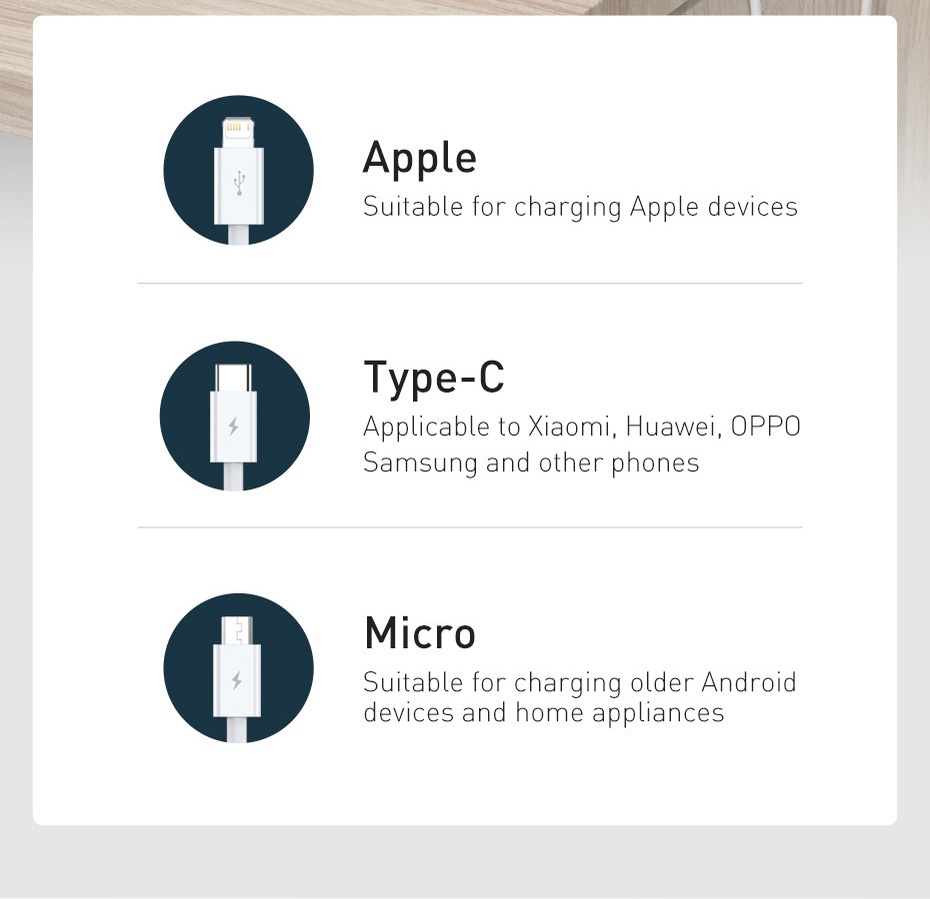 - Phiên bản cáp sạc đa năng với chiều dài lên đến 1.5m và hỗ trợ 3 đầu kết nối cơ bản Type C, IP và Micro USB có thể dùng sạc pin hoặc đồng bộ dữ liệu (chỉ cổng IP). Sản phẩm tương thích với hầu hết các thiết bị số hiện nay .