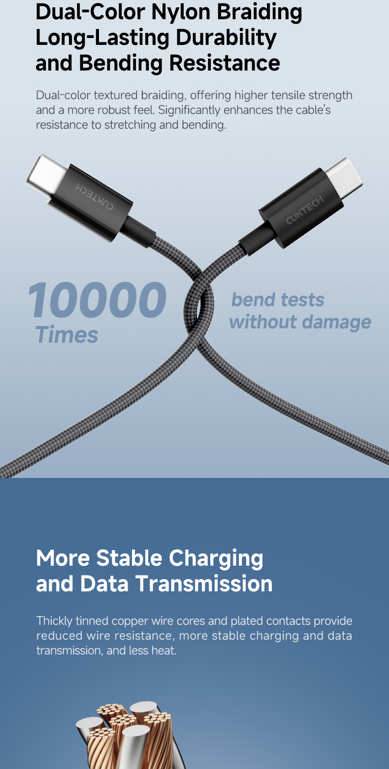 Cáp sạc CukTech CTC315P Type-C to Type-C 60W là phụ kiện cao cấp được thiết kế để đáp ứng nhu cầu sạc nhanh, truyền dữ liệu ổn định và độ bền vượt trội của người dùng hiện đại.