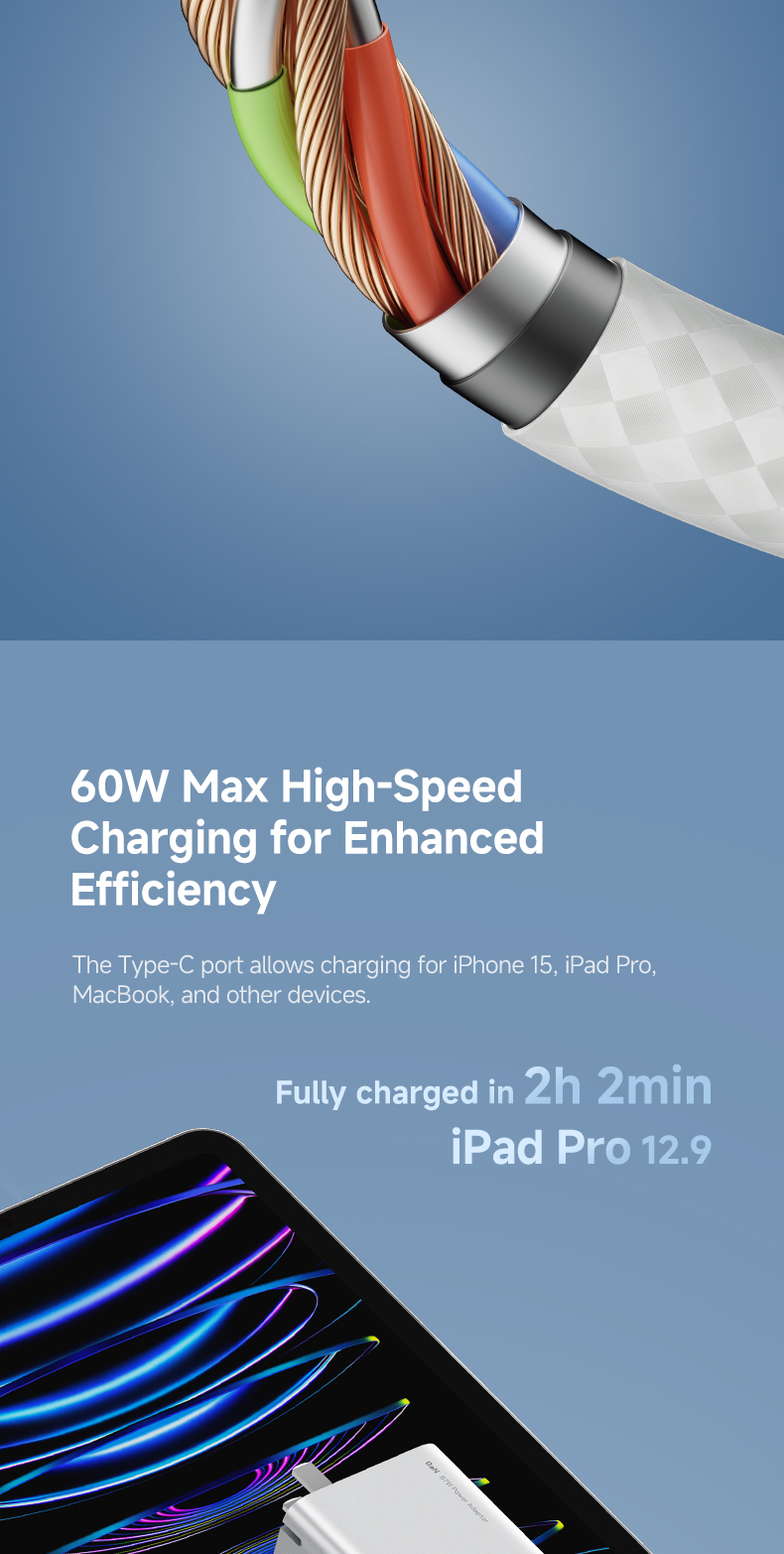 Với công suất tối đa 60W (3A), hỗ trợ chuẩn sạc nhanh PD và QC, cáp phù hợp cho điện thoại, máy tính bảng, laptop USB-C, bao gồm IP 15/16 Series, Ai Pát, Mặc Bục, Samsung Galaxy S Series, Google Pixel và nhiều thiết bị khác.