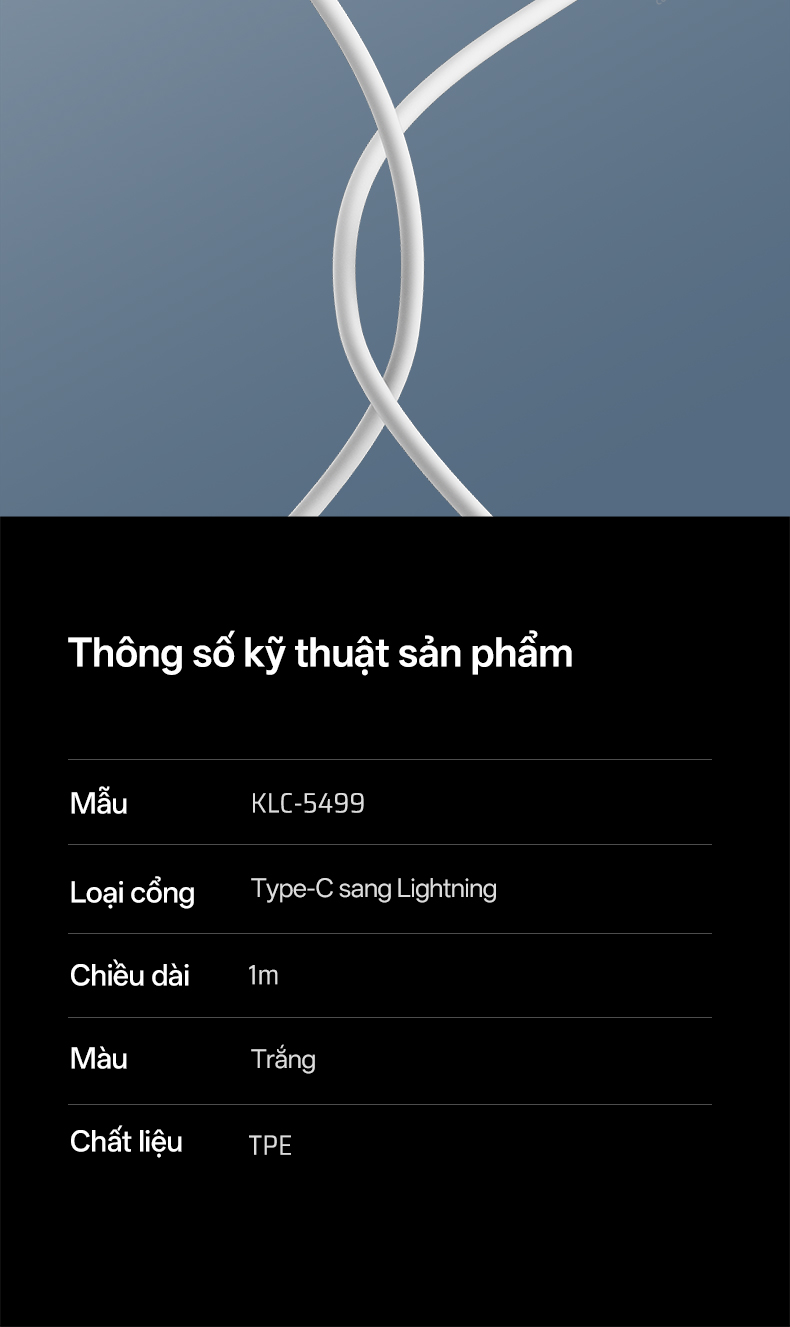 CUKTECH KLC-5499 là mẫu cáp sạc nhanh cao cấp, được thiết kế chuyên biệt cho nhu cầu sạc và truyền dữ liệu tốc độ cao. Với khả năng hỗ trợ công suất tối đa 100W (20V/5A) cùng công nghệ Power Delivery (PD) và Quick Charge 3.0 (QC 3.0), sản phẩm đáp ứng tốt từ smartphone, tablet cho đến laptop. Không chỉ vậy, cáp còn được hoàn thiện với vật liệu bền bỉ, lõi đồng tinh khiết và đầu nối chắc chắn, đảm bảo tuổi thọ cao cũng như hiệu năng ổn định. Đây là giải pháp lý tưởng cho người dùng muốn sở hữu một sợi cáp sạc 100W vừa mạnh mẽ, vừa an toàn, lại tiện lợi khi mang theo hằng ngày.
