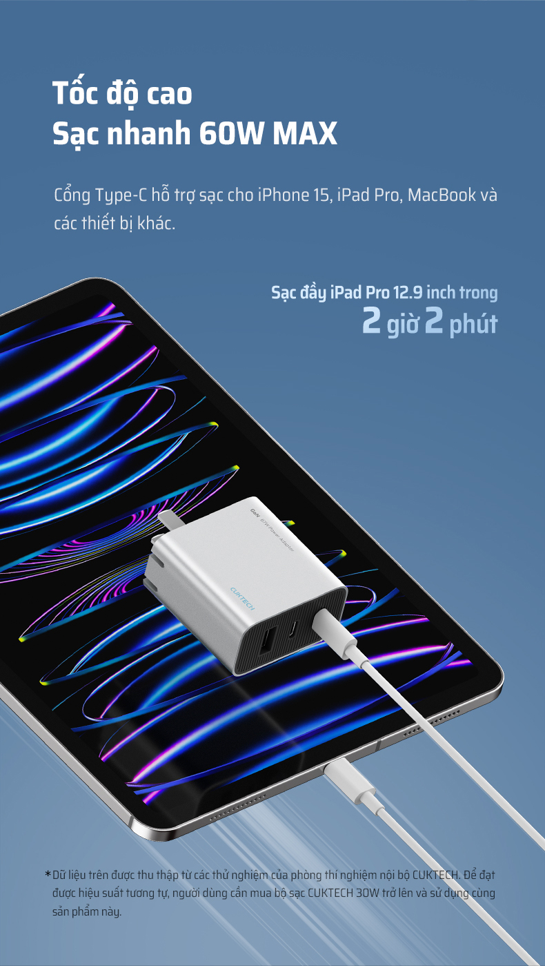 Sạc nhanh 60W an toàn và hiệu quả