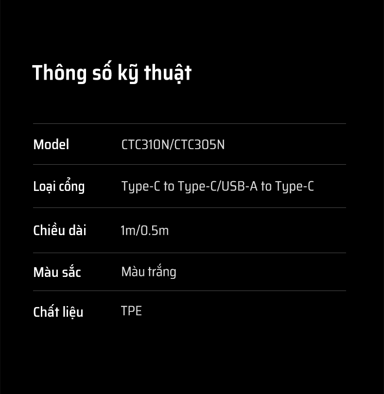 CUKTECH CTC310N là dòng cáp sạc nhanh type C cao cấp, được thiết kế dành riêng cho người dùng hiện đại cần một sợi cáp đa năng: vừa sạc nhanh, vừa truyền dữ liệu hiệu quả. Với công suất tối đa 60W, sản phẩm dễ dàng đáp ứng nhu cầu sạc nhanh cho điện thoại, máy tính bảng và cả laptop mỏng nhẹ.