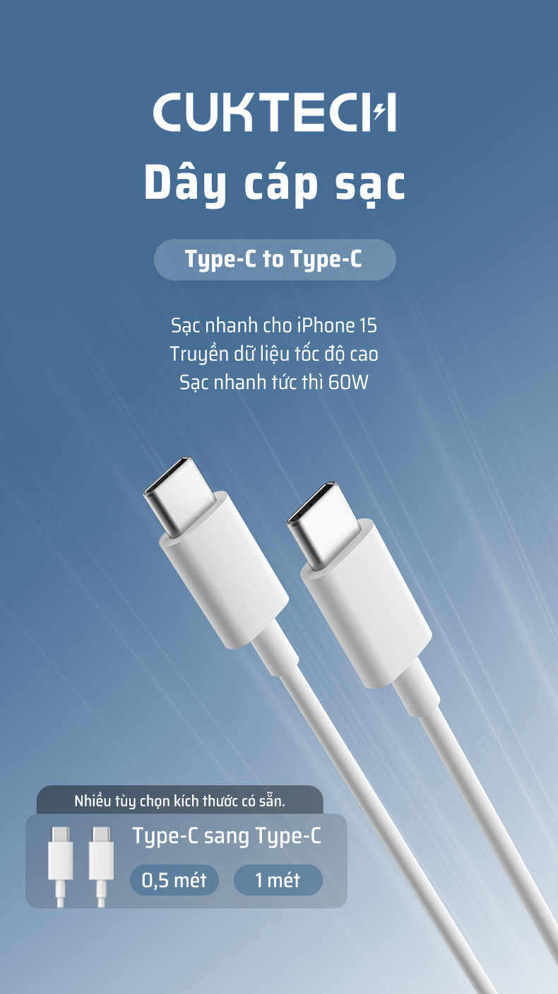 Ngoài ra, tốc độ truyền dữ liệu 480Mbps giúp việc sao chép tài liệu, hình ảnh, video trở nên nhanh chóng và tiện lợi. Thiết kế cáp C to C 1 mét gọn gàng, lõi đồng mạ thiếc kết hợp với vỏ TPE chống gãy gập đảm bảo độ bền cao trong quá trình sử dụng. Đây là sự lựa chọn lý tưởng cho những ai muốn sở hữu một cáp sạc 60W bền bỉ, an toàn, và tương thích với nhiều thiết bị từ iPhone, iPad, MacBook đến điện thoại Android.