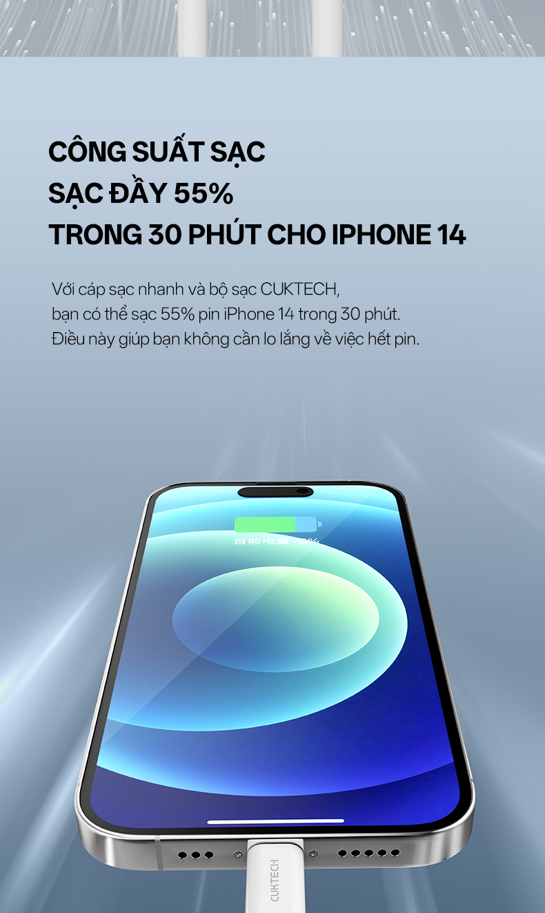 Cáp Sạc Nhanh iPhone 1m CUKTECH KLC-5497 là một sản phẩm phụ kiện chất lượng cao, được thiết kế chuyên biệt cho các thiết bị Apple như iPhone, iPad và iPod. Với chuẩn MFi (Made for iPhone), cáp này đảm bảo tương thích hoàn toàn với các thiết bị Apple, thay thế hoàn toàn phụ kiện chính hãng mà không làm giảm hiệu suất sạc hoặc tốc độ truyền dữ liệu. Sản phẩm giúp người dùng sạc nhanh và đồng bộ dữ liệu một cách an toàn, ổn định, phù hợp cả sử dụng tại nhà, văn phòng hay trên ô tô. Với chiều dài 1m, cáp vừa đủ để thuận tiện khi sử dụng mà không bị rối hay mất hiệu suất. Đây là lựa chọn tối ưu cho người muốn cáp sạc iPhone chất lượng, bền bỉ và hiệu quả, đồng thời đảm bảo an toàn tuyệt đối cho thiết bị.