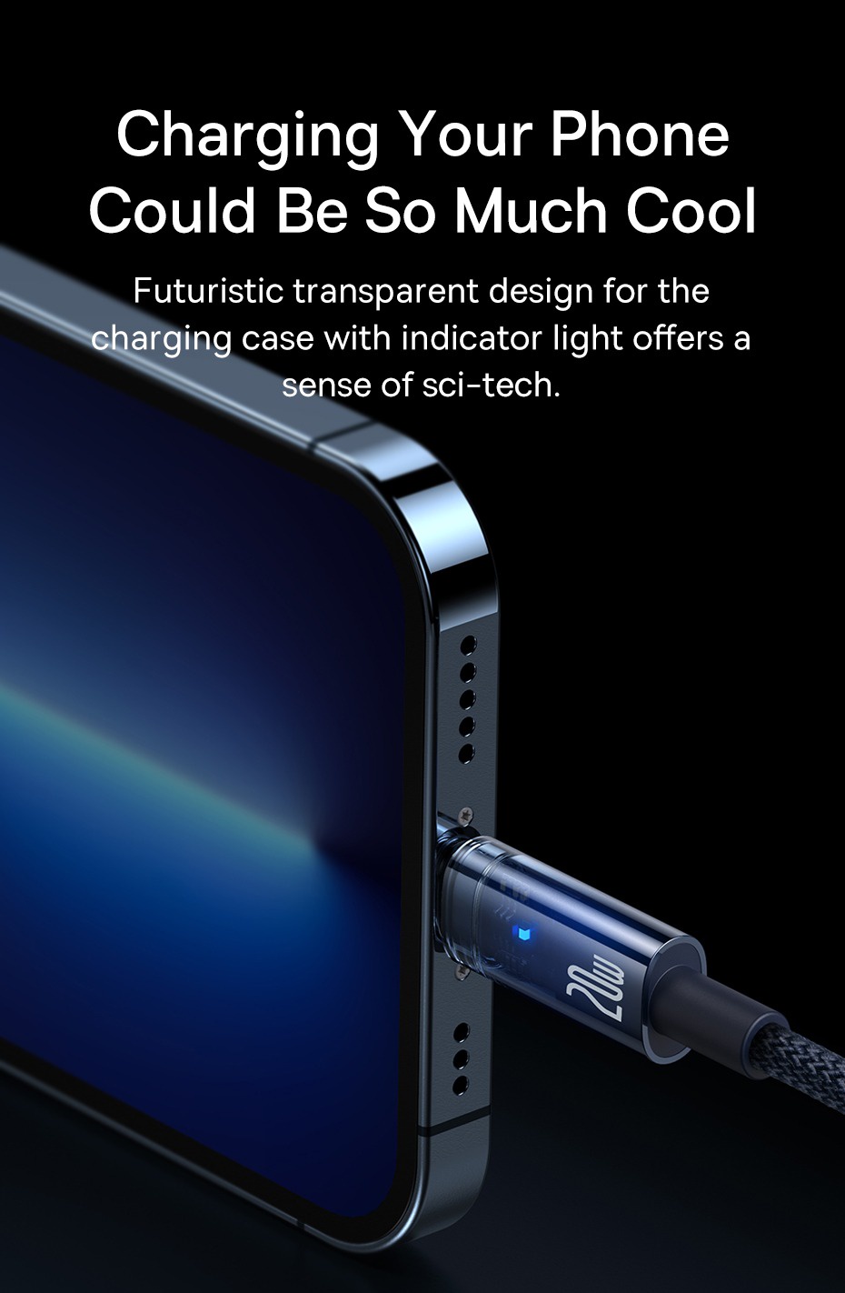 - Cáp Sạc Type C to IP Baseus Explorer Series có thiết kế hoàn toàn mới, sang trọng và hiện đại hơn . Đầu cáp trong suốt có thể nhìn được hoàn toàn linh kiện và đèn LED báo hiệu bên trong. Thiết kế này làm tăng tính hiện đại của sản phẩm , tạo cảm giác mới mẻ và lý thú khi sử dụng.