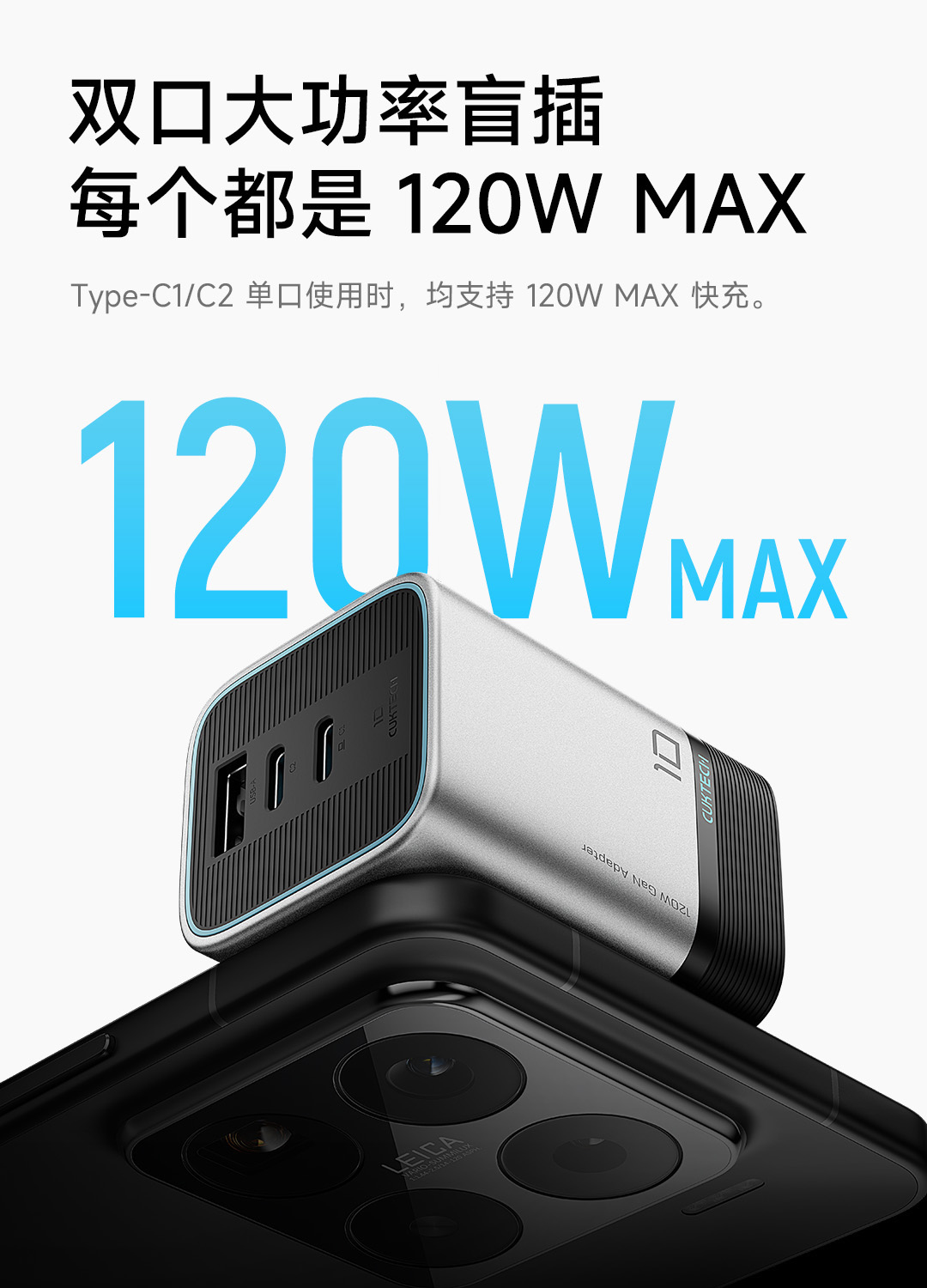Củ sạc CUKTECH 10 Mini GaN AD1203P 120W (2C1A) – Sạc nhanh nhỏ gọn, mạnh mẽ và an toàn