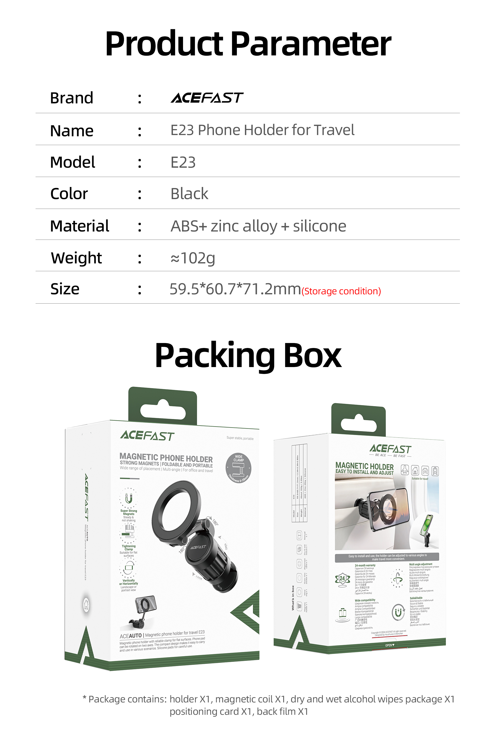 ABS + hợp kim kẽm + silicone + nam châm N52.