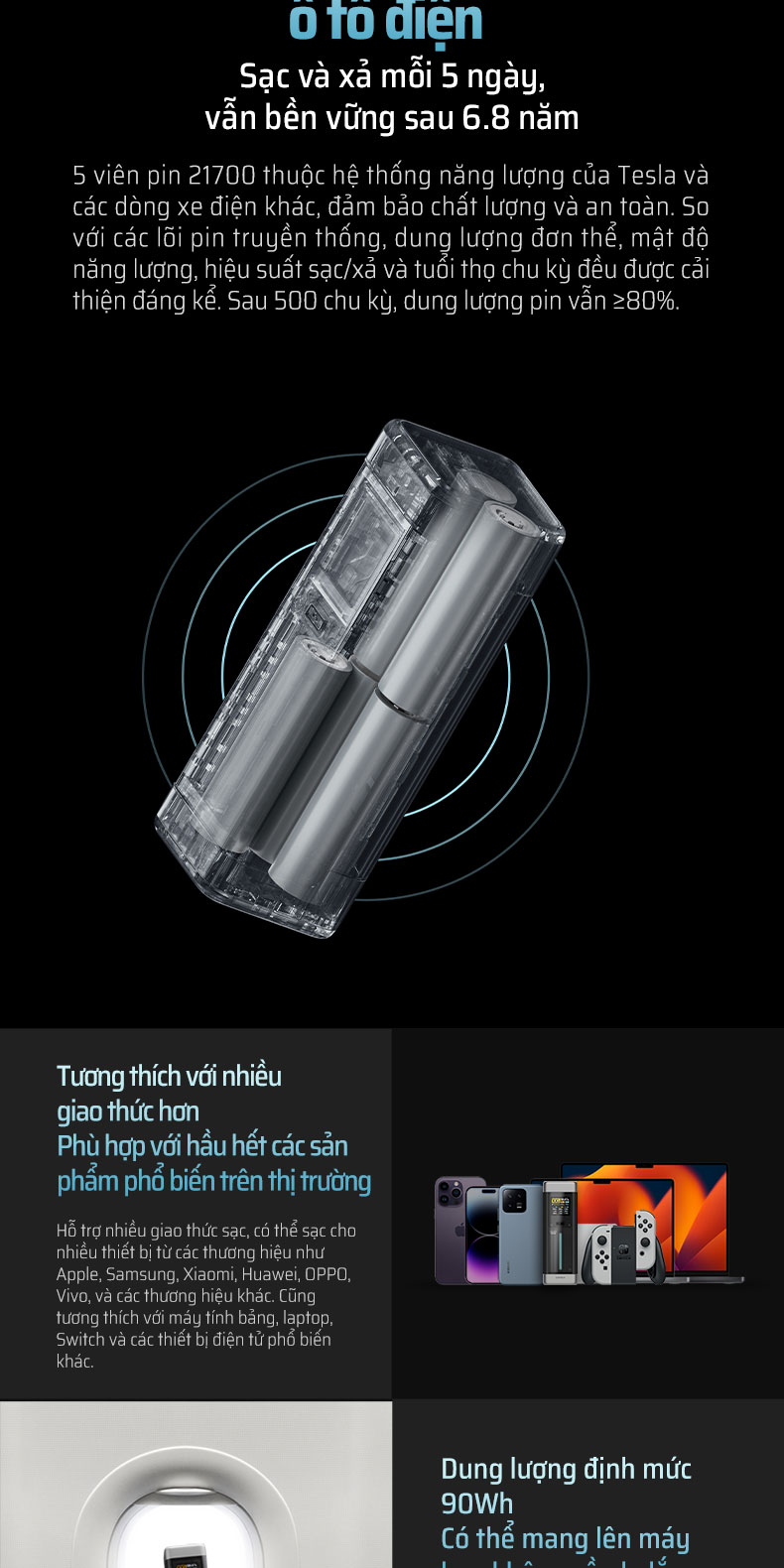 Đặc biệt, sản phẩm sử dụng pin chuẩn Auto-Grade có tuổi thọ hơn 1.000 chu kỳ sạc – gấp 3 lần so với pin dự phòng thông thường. Điều này không chỉ giúp tiết kiệm chi phí thay thế mà còn đảm bảo độ bền và tính an toàn cao hơn. Nhờ đó, bạn có thể yên tâm mang theo khi đi công tác, du lịch hoặc làm việc ngoài trời trong thời gian dài.