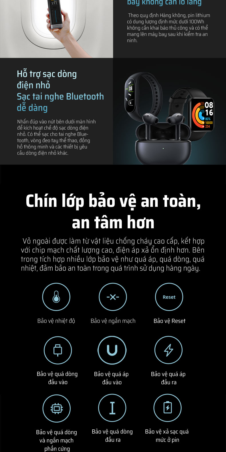 | Chứng nhận an toàn | UL, CE, CB, FCC – đạt chuẩn mang lên máy bay (<100Wh) |