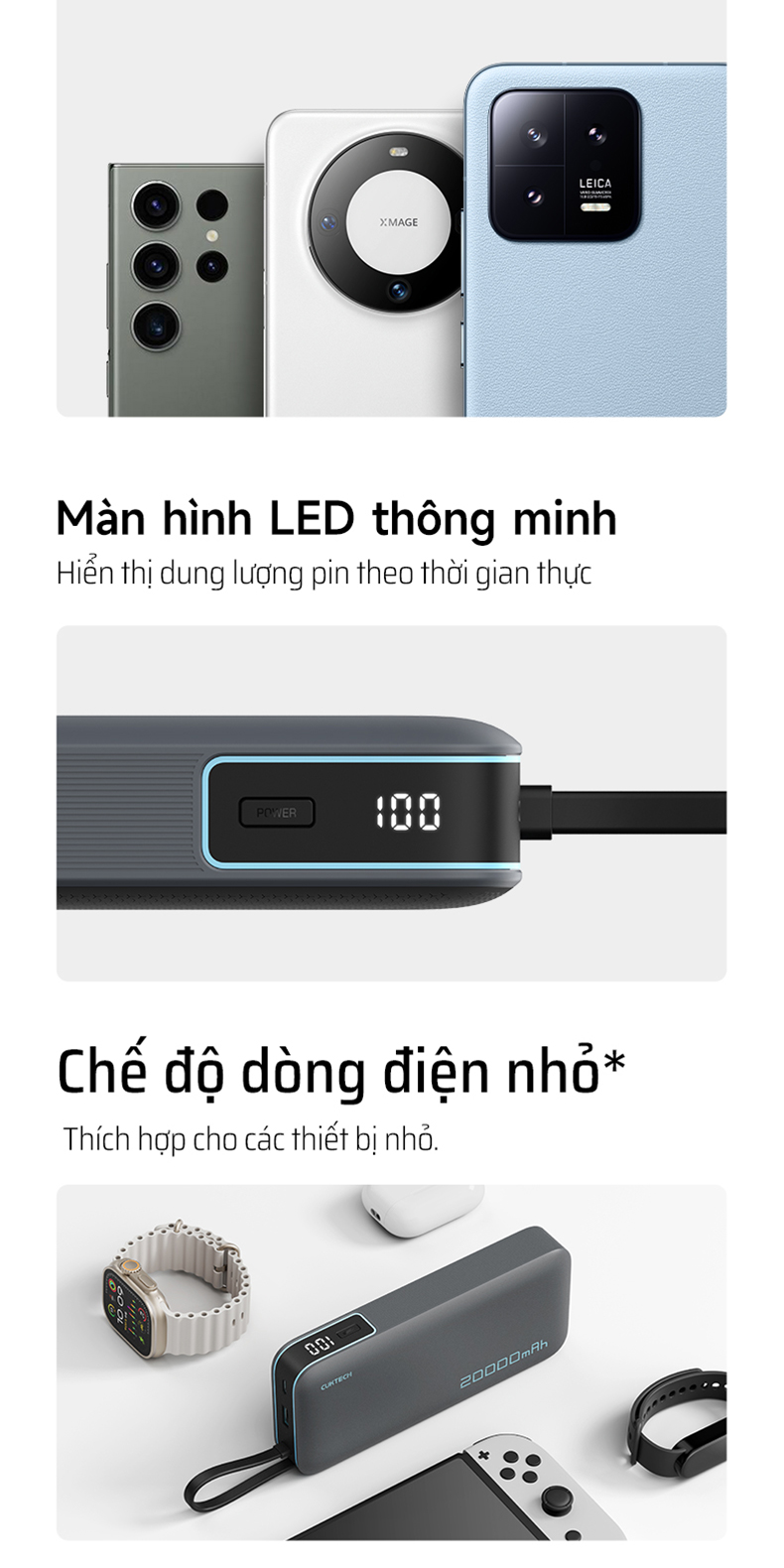 CUKTECH PB200N Pin sạc dự phòng 20000mAh 55W không chỉ là một viên pin di động thông thường, mà còn là giải pháp năng lượng toàn diện, đáp ứng mọi nhu cầu từ sạc nhanh, dung lượng lớn cho đến khả năng sạc nhiều thiết bị cùng lúc. Với thiết kế gọn gàng, tính năng tiện lợi và độ an toàn cao, sản phẩm là sự lựa chọn hoàn hảo cho người dùng hiện đại.