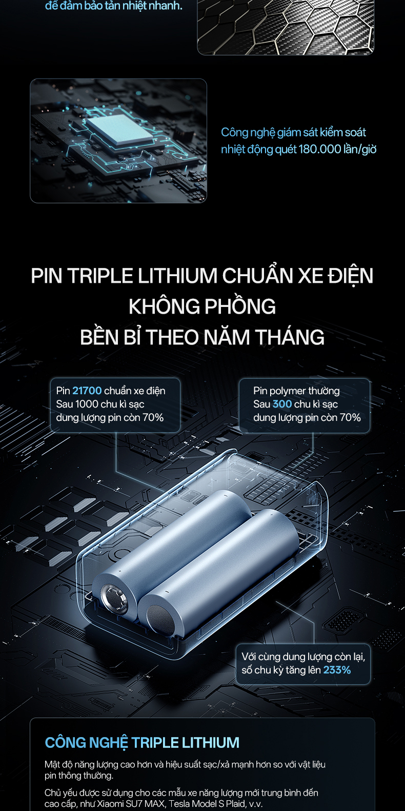 | Dung lượng định mức | 5.600mAh (5V = 3A) |