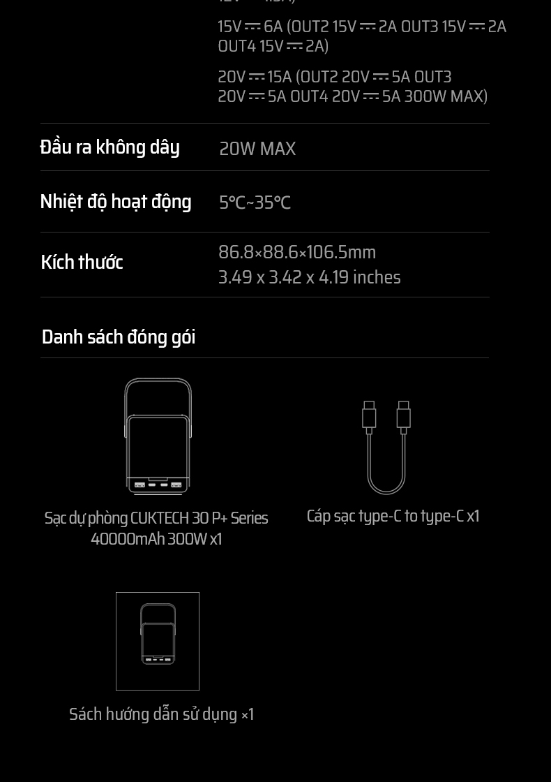 Đa dạng cổng kết nối: Được trang bị 2 cổng USB-C, 2 cổng USB-A và sạc không dây tối đa 20W, hỗ trợ sạc đồng thời cho đến 5 thiết bị với đầu ra tối đa 300w. Dự phòng điện cho các buổi tụ tập gia đình và bạn bè, loại bỏ nhu cầu sử dụng nhiều bộ sạc và cung cấp sự tiện lợi khi sạc đồng thời nhiều thiết bị.