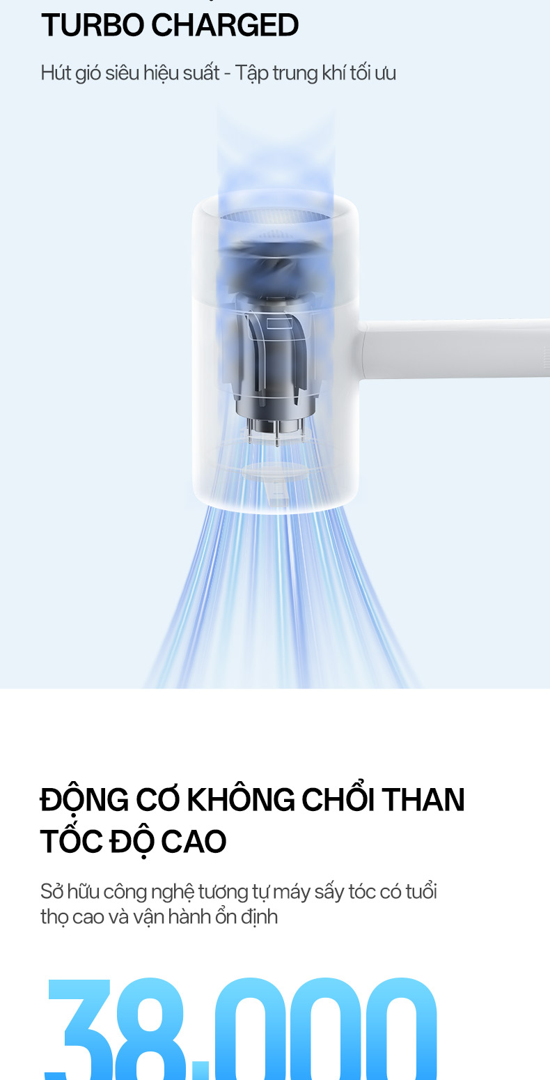 Động cơ DC không chổi than 38.000 vòng/phút.