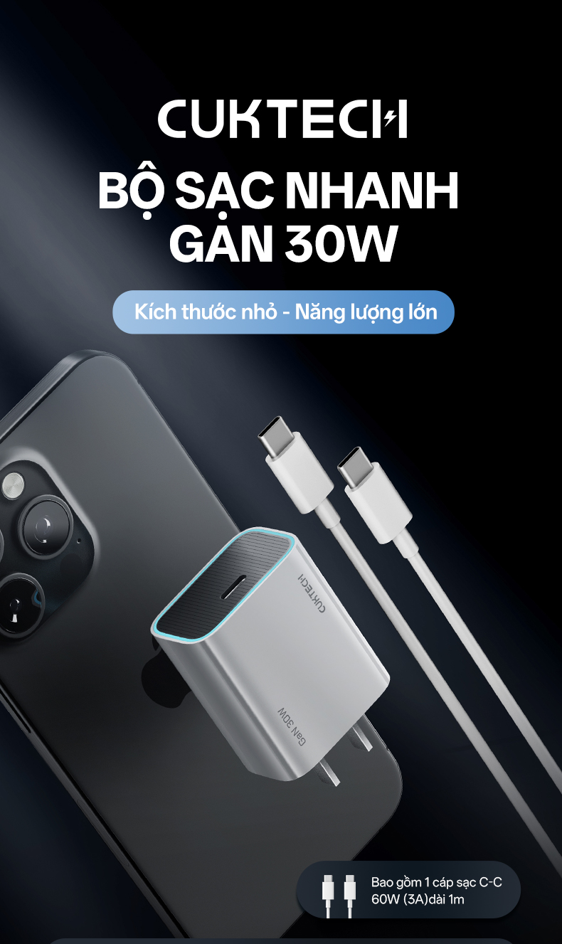 Bộ củ sạc Cuktech GAN 1C 30W kèm cáp C-C (CN) A18C với khả năng sạc nhanh ổn định, đi kèm thiết kế nhỏ gọn, đáp ứng tốt nhu cầu sạc hiệu quả. Đây là lựa chọn đáng cân nhắc cho người dùng thường xuyên di chuyển, ưu tiên sự tiện lợi và an toàn.