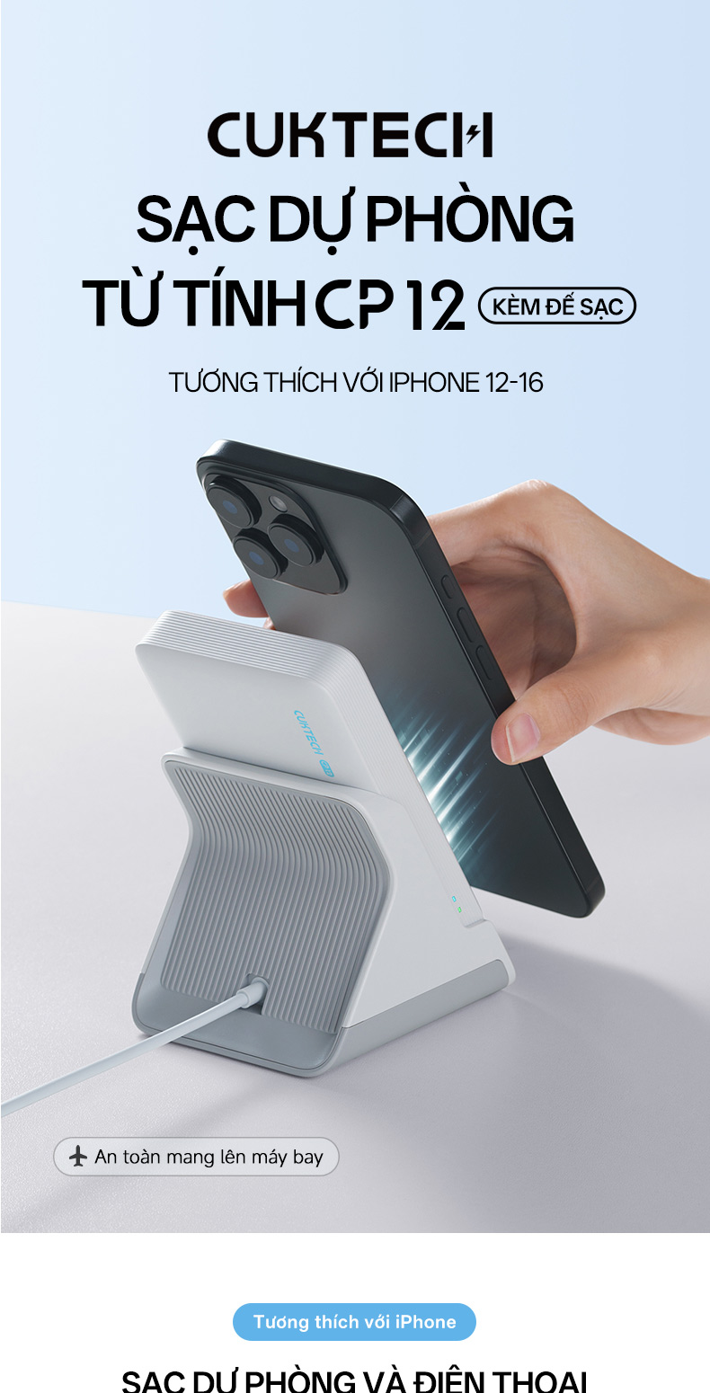 Sạc Dự Phòng Không Dây Đa Năng Cuktech WPB100N 10000mAh là thiết bị sạc thế hệ mới được thiết kế tối ưu cho người dùng hiện đại. Sản phẩm kết hợp giữa công nghệ sạc nhanh, khả năng sạc không dây chuẩn Qi 1.3 và hệ thống nam châm N52 hít từ tính mạnh mẽ, giúp giữ thiết bị chắc chắn trong quá trình sử dụng. Với dung lượng pin 10.000mAh, Cuktech WPB100N dễ dàng đáp ứng nhu cầu sạc nhiều lần cho điện thoại hoặc các thiết bị di động khác, đồng thời đảm bảo an toàn tuyệt đối nhờ công nghệ điều chỉnh nhiệt độ thông minh Dual NTC và tản nhiệt graphene.
