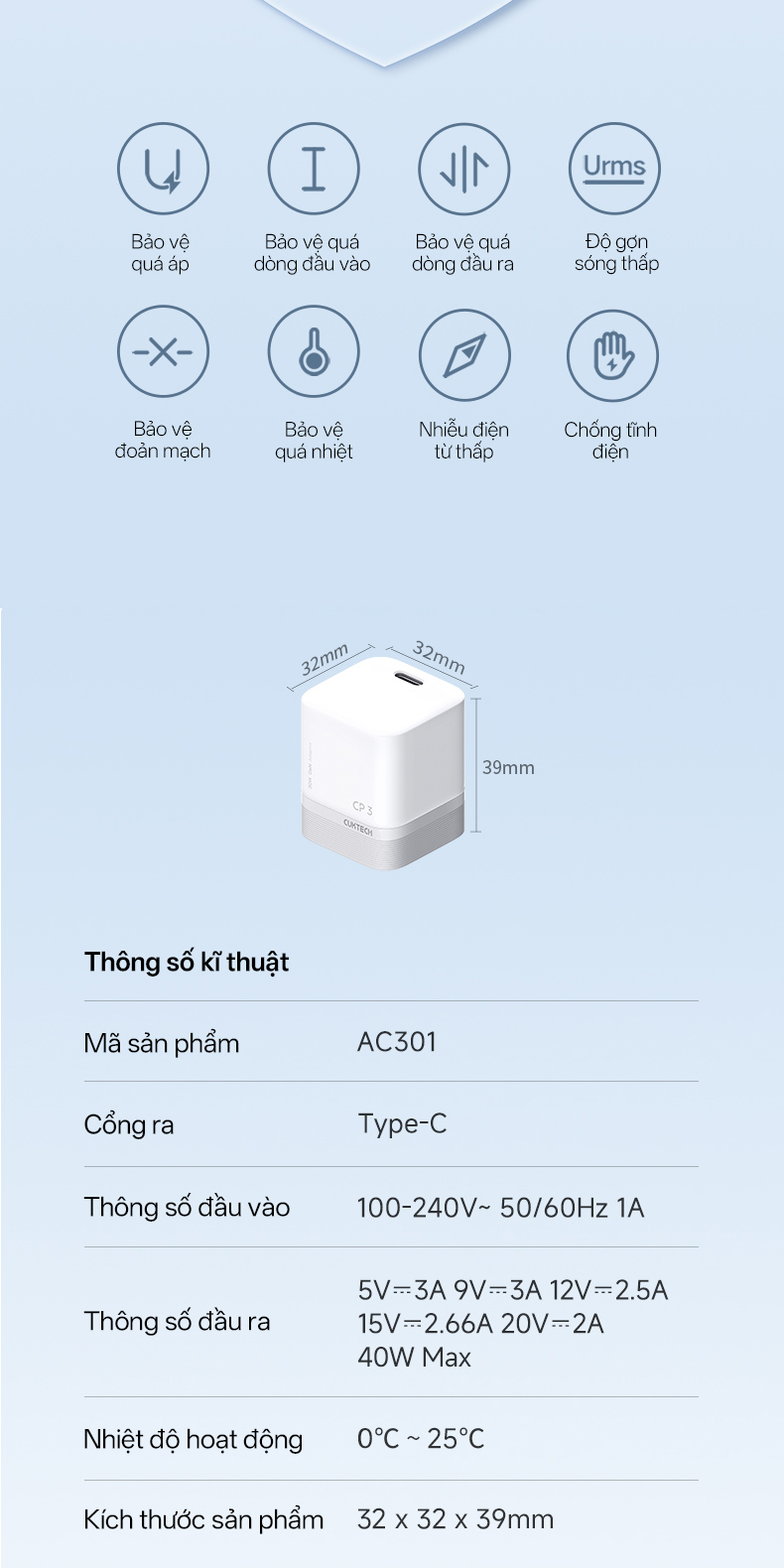 | Mã sản phẩm | AC301 |