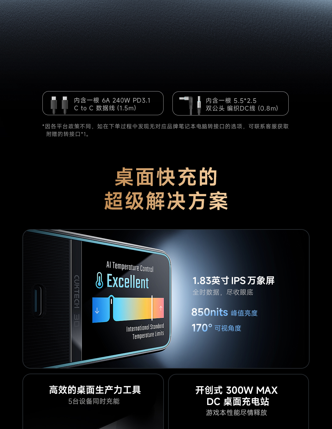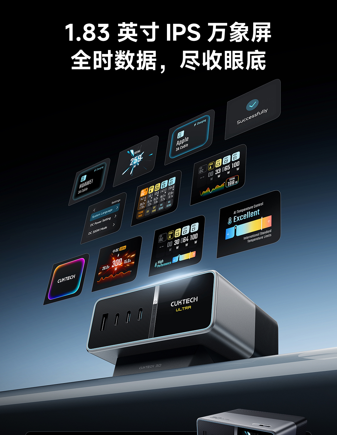 CUKTECH tiếp tục khẳng định vị thế dẫn đầu trong lĩnh vực sạc nhanh với siêu phẩm mới nhất: Trạm sạc CUKTECH 30 Ultra Super Power Station 300W – trạm sạc bàn chuyên nghiệp có công suất tối đa lên đến 300W, thiết kế tối ưu cho cả game thủ, dân công nghệ và người dùng chuyên nghiệp.