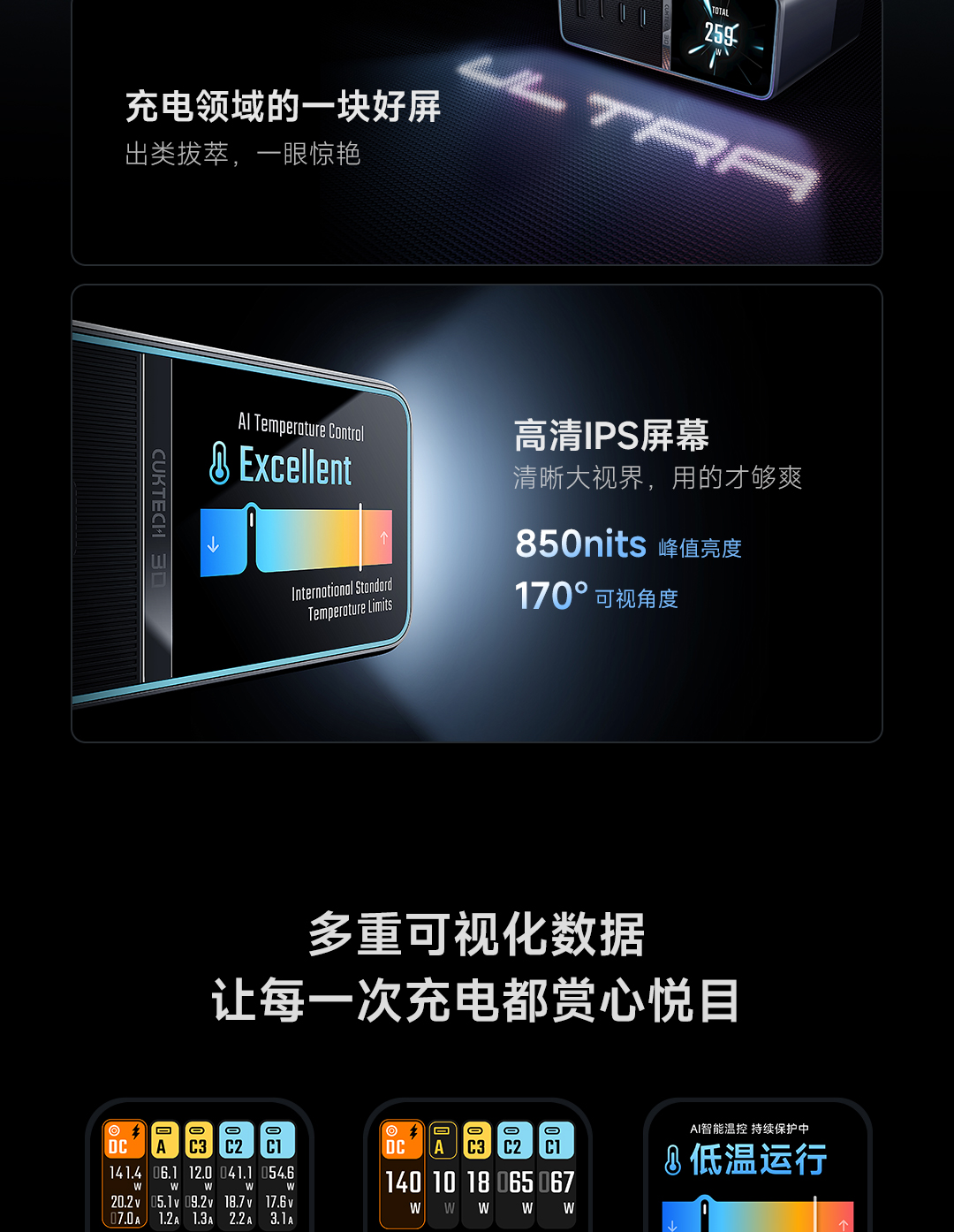 Quản lý nhiệt độ thông minh, hiển thị trạng thái “Excellent” giúp bảo vệ thiết bị và tối ưu hiệu suất sạc.